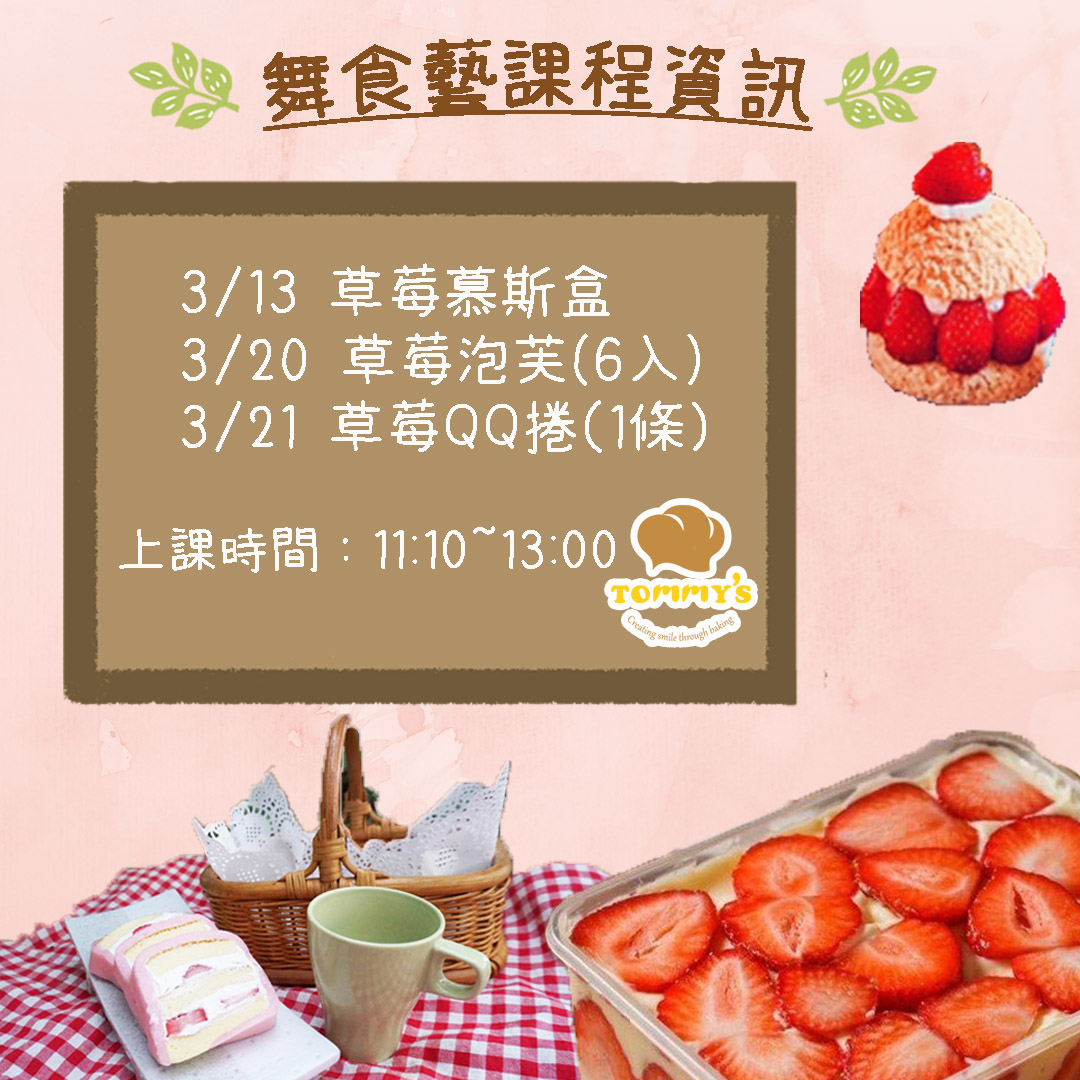 課程時間與地點 活動內容:草莓季烘焙DIY體驗 活動地點:新光三越A8 7樓 舞..