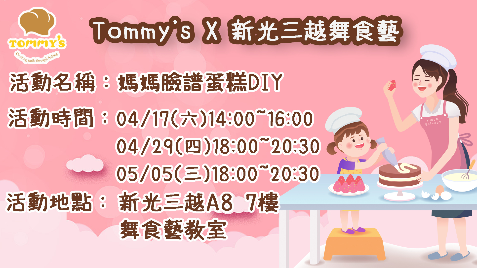 課程時間 活動內容:媽媽臉譜DIY體驗 活動地點:新光三越A8 7樓 舞食藝烘焙..