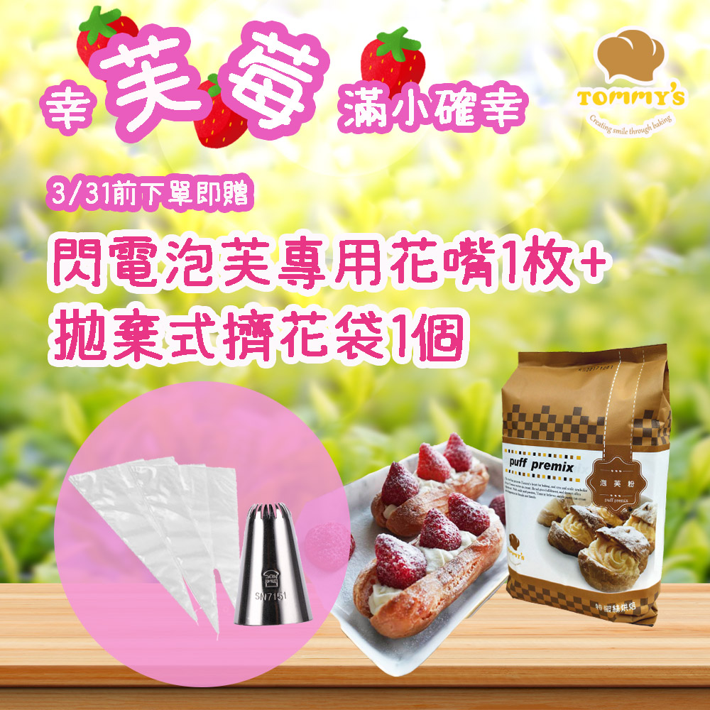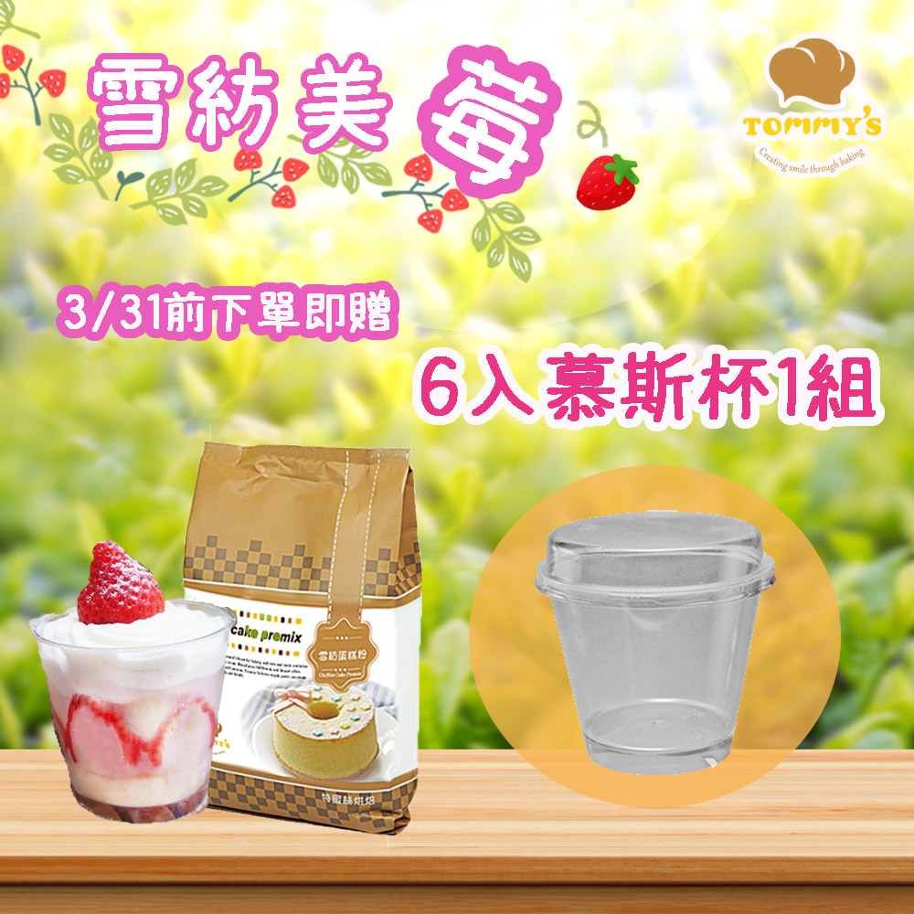即日起至3/31 至蝦皮下單雪莓娘粉、泡芙粉或雪紡蛋糕粉 即贈各式烘焙小物(如圖所示)