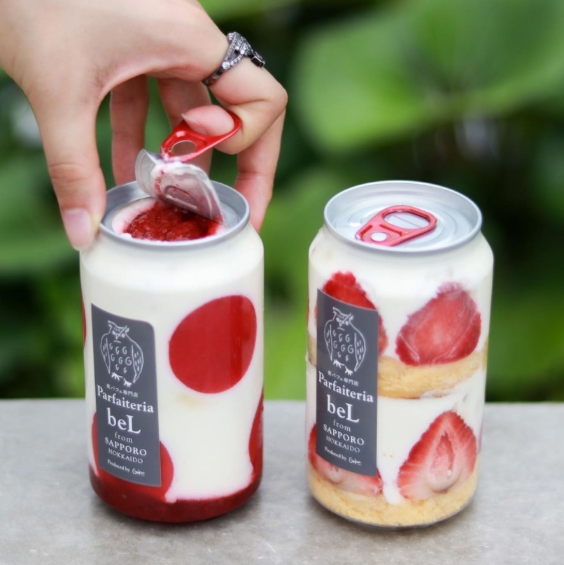 這款易開罐蛋糕,把草莓蛋糕、提拉米蘇、水果口味戚風蛋糕,通通都裝進去罐子裡了!透明的瓶身可以看出中間一層層蛋糕的構造,蛋糕剖面有海綿蛋糕、新鮮水果、以及用北海道牛乳製作的滿滿鮮奶油,這也太療癒了吧!把罐子裝的滿滿的,也不怕蛋糕帶在身上搖來搖去會變形,想吃的時候只要輕輕拉開上方的拉環,就可以隨時享用這道美味甜點了~