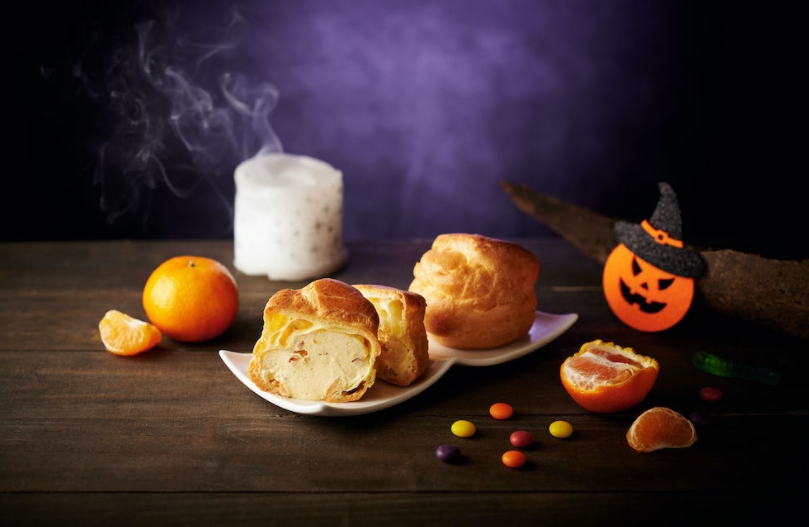 「魔晶橘瓣蛋糕」(89元)則是乳酪慕斯搭配戚風蛋糕,同時使用切片柑橘果肉,多汁的食感,再與頂層橘子果凍融合,清爽不膩;「嚇破膽蜜橘泡芙」(69元/2入)以日式泡芙工法結合橘子風味鮮奶油,一口咬下酸甜滋味保證讓消費者超驚喜。