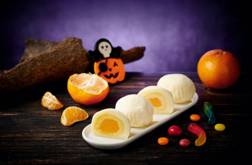 「詭橘怪蛋糕」(99元)上層以香吉士餡製成軟Q橘子凍,搭配乳酪慕斯以及日式蛋糕體,橘香四溢,令人愛不釋口;「搗蛋鬼蜜橘大福」(59元/2入)有著Q彈麻糬皮包入蜜橘內餡,成為全新食感。