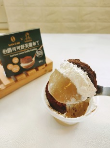 中層是非常清爽的馬斯卡彭搭上鮮奶油,不會膩口量也不多像是一座橋樑將蛋糕和布丁串連,激盪出多層次的迷人口感。