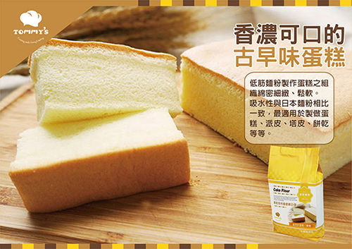 使用Tommy's低筋麵粉可用於製作高級蛋糕、西點餅乾,用其製作蛋糕組織綿密細緻、鬆軟,吸水性與日本麵粉相比一致。