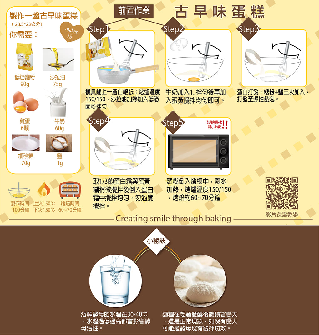 1. 用剩的麵粉如何保存? 存放在陰涼乾燥處、封口需綁緊,避免麵粉受潮。 2. 一定要嚴格按照配方中的溫度和時間來製作嗎? 因器具不完全相同,所以製作時間、烤焙的溫度都會有所差異,需依實際狀況作調整。 3. 做出來的餅乾可以保存多長時間? 保存時間會依餅乾的種類、保存方法、容器都會影響保存的時間。