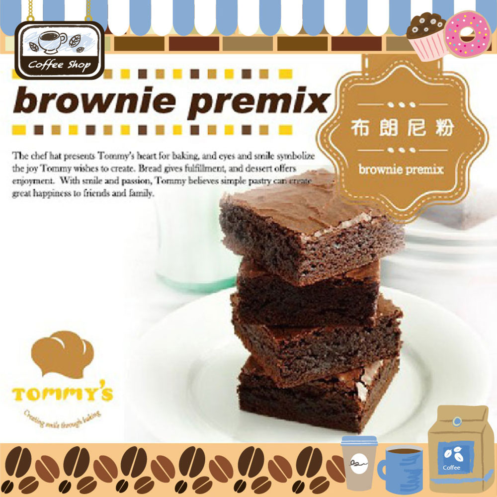 布朗尼粉不同於市面上的製作方式,不需要外加巧克力磚,省去麻煩且複雜的步驟,只要將所有材料一次加入,攪拌均勻即可製作出濕潤綿密的布朗尼蛋糕。使用布朗尼粉做出來的布朗尼,其組織膨鬆濕潤,有著巧克力的香醇,柔滑細膩的口