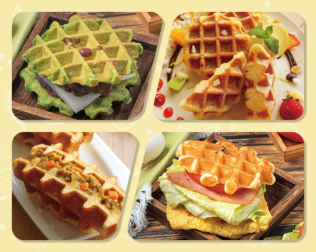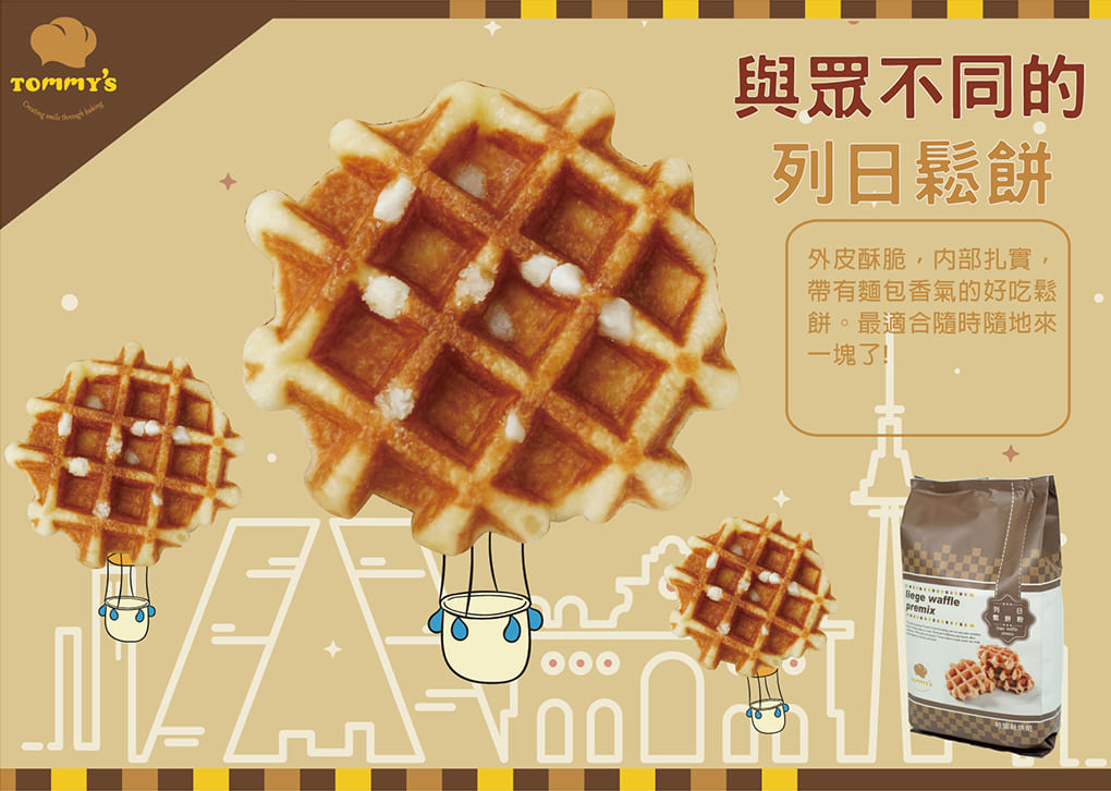 列日鬆餅粉不僅可製作出鬆餅,也可以搭配其他材料做出不同的產品變化,如披薩、甜甜圈、佛卡夏等產品。