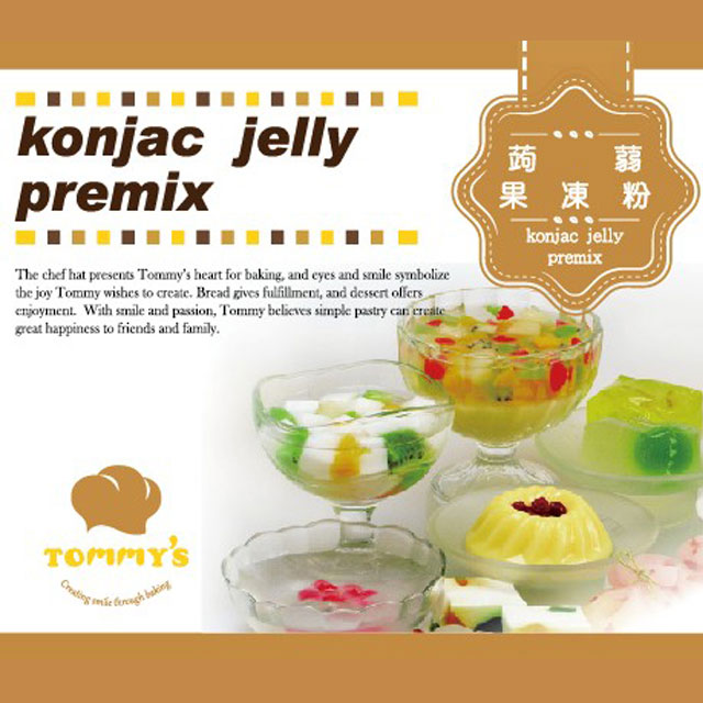 軟Q有口感。蒟蒻果凍粉內含有高纖維蒟蒻,是一款健康、低熱量的產品。蒟蒻果凍粉可在製作過程中加入果汁調味,當成小朋友們的日常點心,也可以和飲料一起搭配食用,別有一番風味。