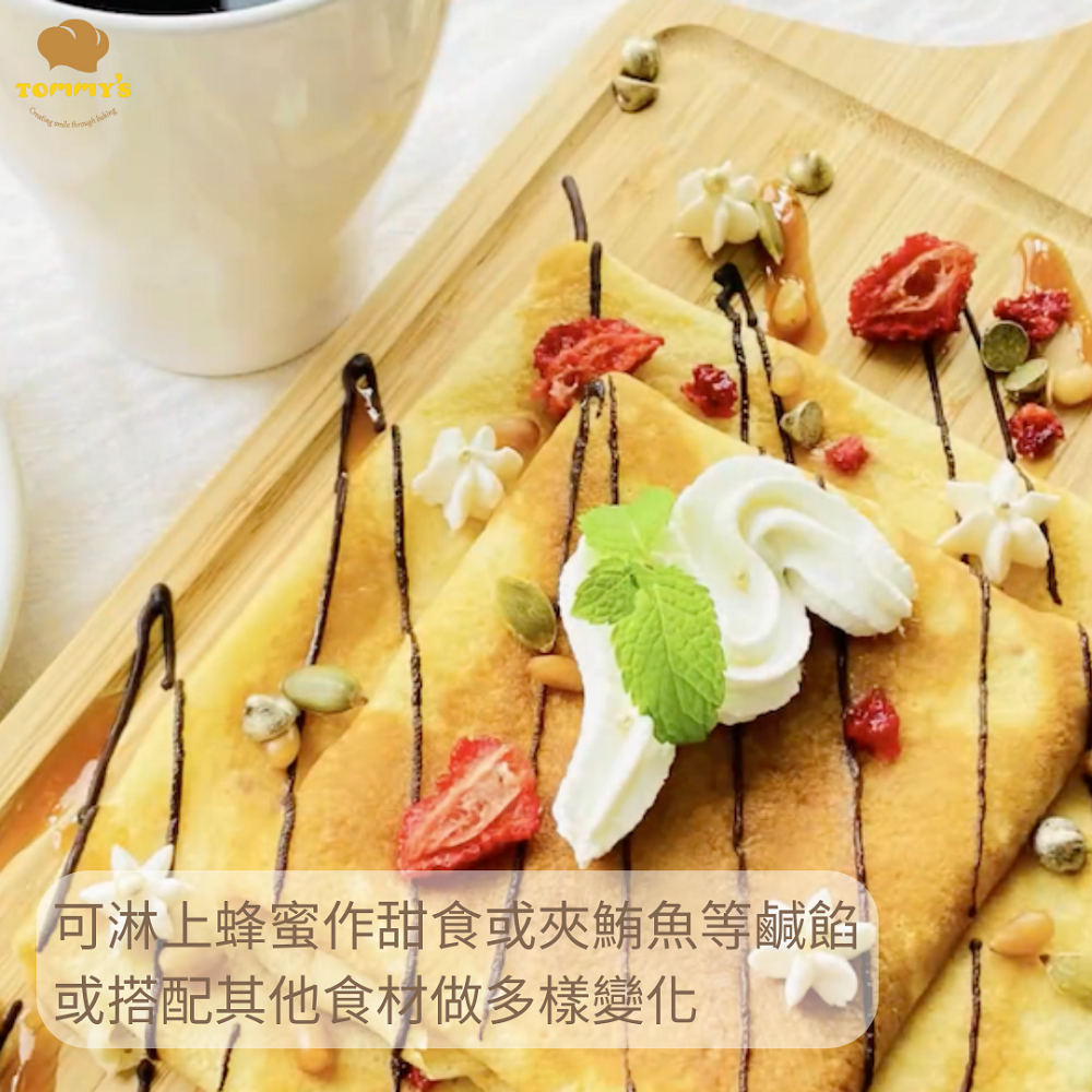 用Pancake鬆餅粉做出的鬆餅味道香醇濃郁,組織濕潤不乾口,不需使用特別的模具,利用家中的平底鍋就能做出時下流行的厚片鬆餅,講究的您也可以淋上蜂蜜,塗抹果醬一起食用,想吃鹹食的話可以在兩片Pancake鬆餅的中間夾火腿、鮪魚等鹹餡食用,Pancake鬆餅可以是您早餐的第一選擇,也可以是您下午茶的最佳伴侶。