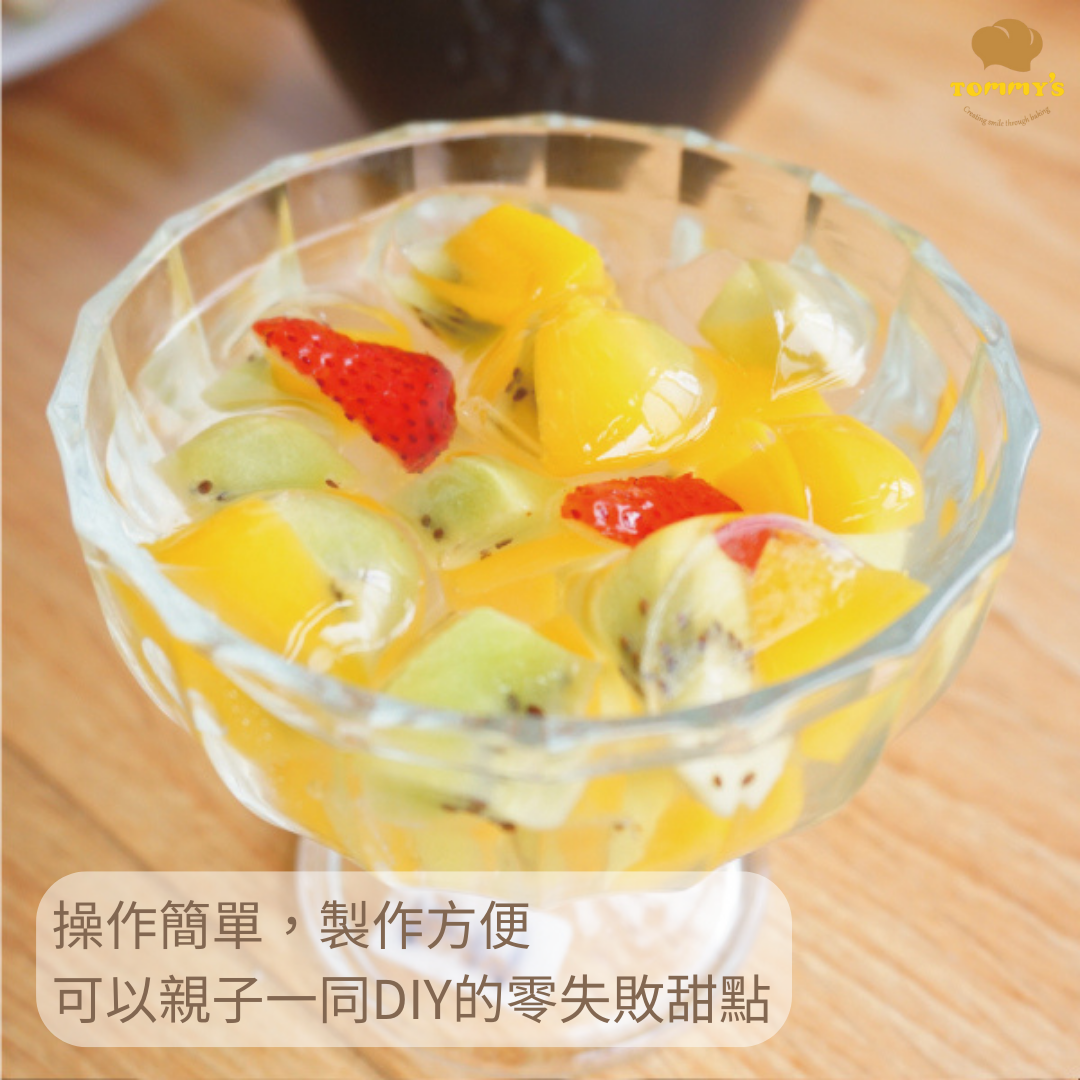 軟Q有口感。蒟蒻果凍粉內含有高纖維蒟蒻,是一款健康、低熱量的產品。蒟蒻果凍粉可在製作過程中加入果汁調味,當成小朋友們的日常點心,也可以和飲料一起搭配食用,別有一番風味。